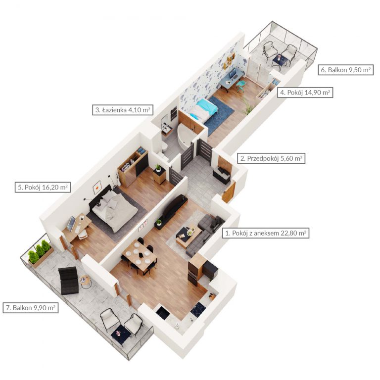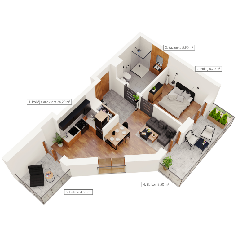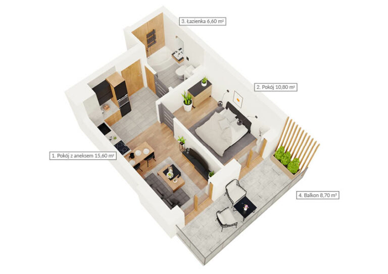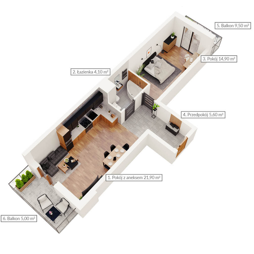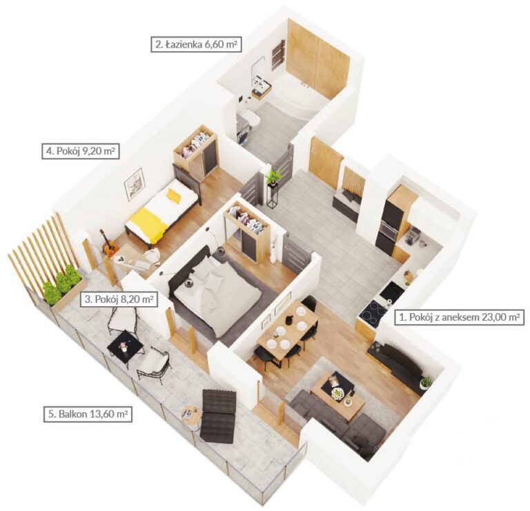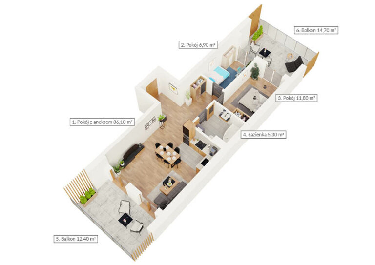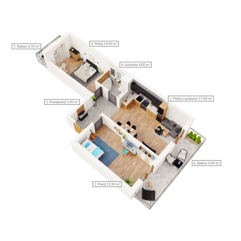 Mieszkanie dwupokojowe z dwoma balkonami