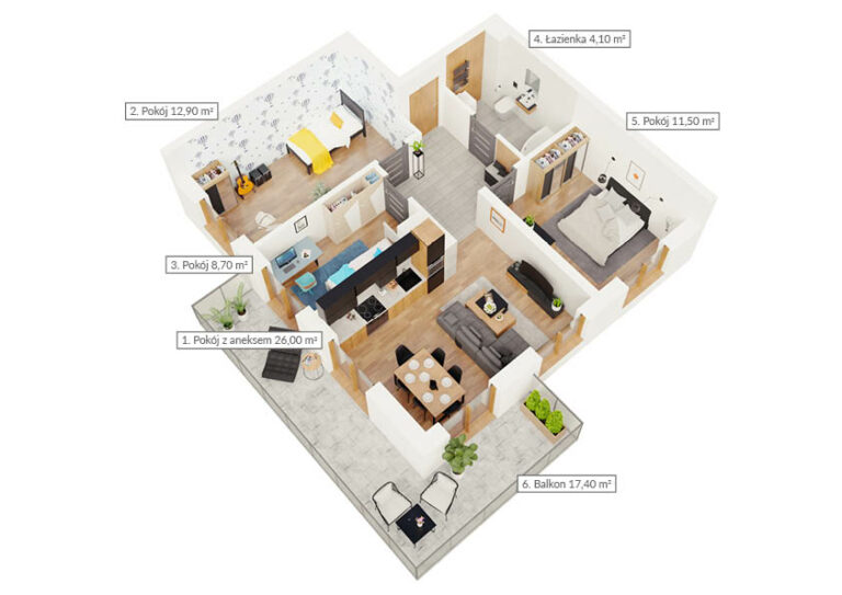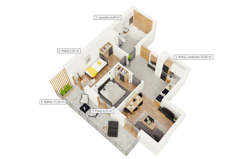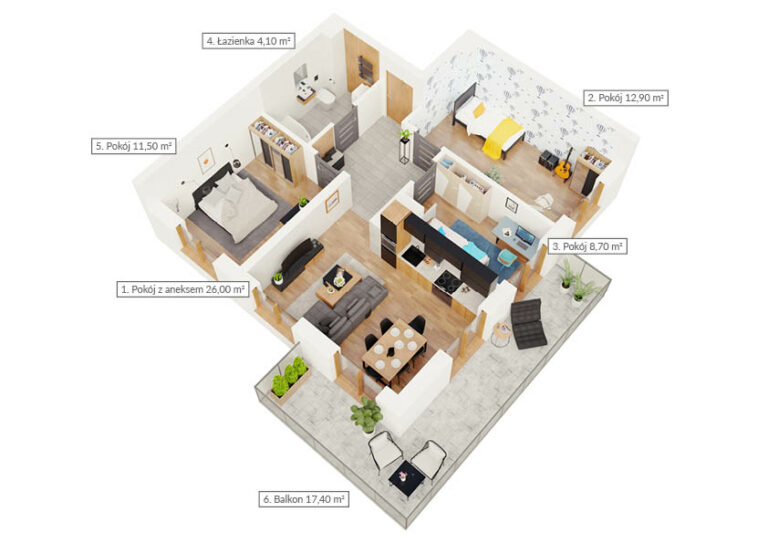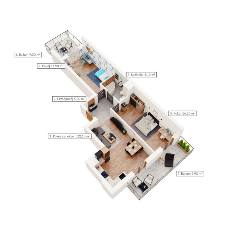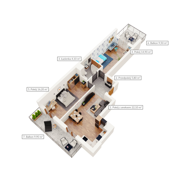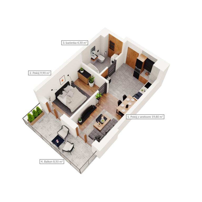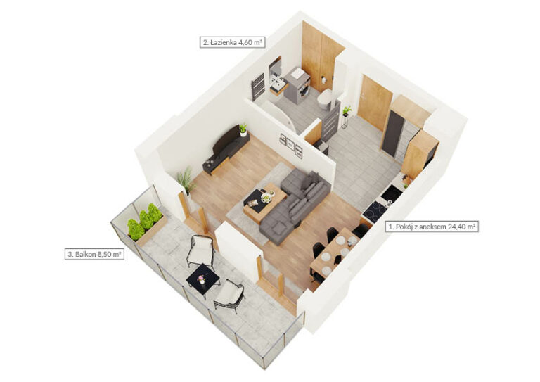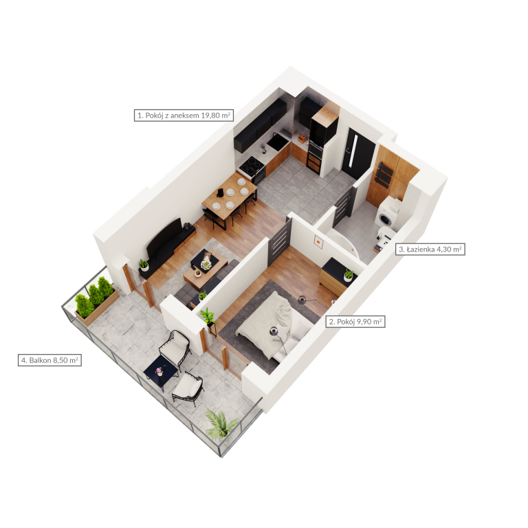 Mieszkanie dwupokojowe z dwoma balkonami
