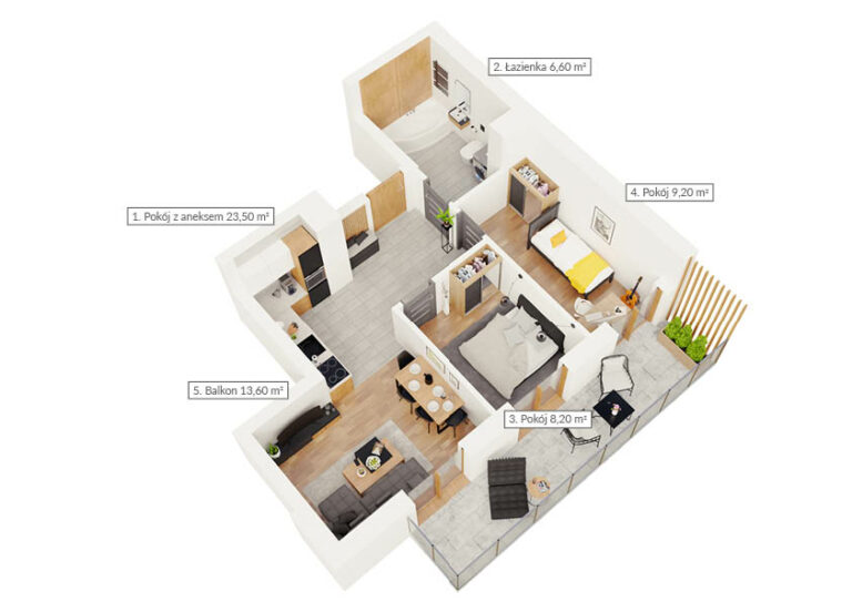 NR: Nr: 3.3.1 Piętro: 3 Pokoje: 3 Powierzchnia: Pow: 47,00m2 Balkon: 13,60m2 : 3 Rezerwacja Więcej