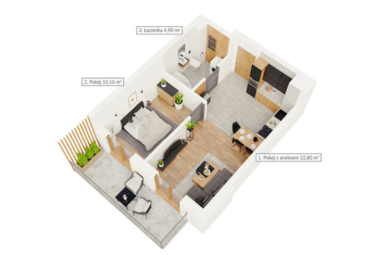 NR: Nr: 3.3.9 Piętro: 3 Pokoje: 3 Powierzchnia: Pow: 44,90m2 Balkon: 17,60m2 : 3 Rezerwacja Więcej