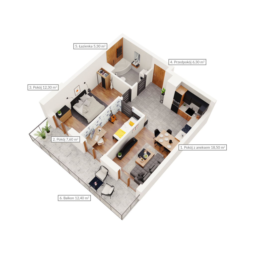 NR: Nr: 3.1.6 Piętro: 1 Pokoje: 2 Powierzchnia: Pow: 37,80m2 Balkon: 9,60m2 : 3 Rezerwacja Więcej